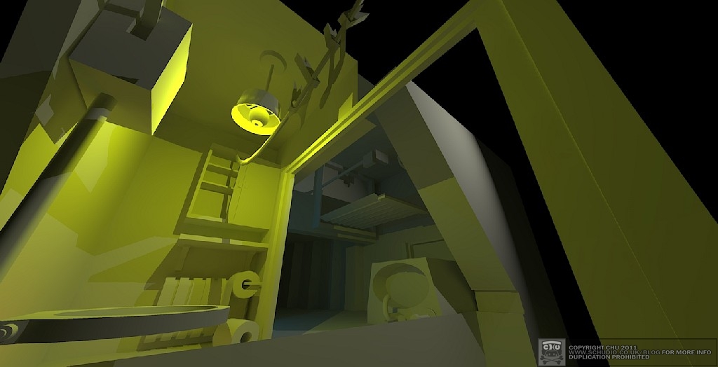 The scene is a plane-shifted bathroom, on each plane there is an object found inside most domestic bathrooms. This one belonged to the imaginary De Burrvrouw (Dutch, meaning the neighbour’s wife, after the venue’s name). On the regular plane was the toilet cubicle, on the floor plane is a sink, and on the wall plane is a shower. It’s quite an energetic start, using ladders to create the manual layout planes, and getting all the dynamics & scale correct. On a large scale this can have an eerie feeling as you move around the sweet spot, viewed from the floor the distortion is in its purest, undressed form.